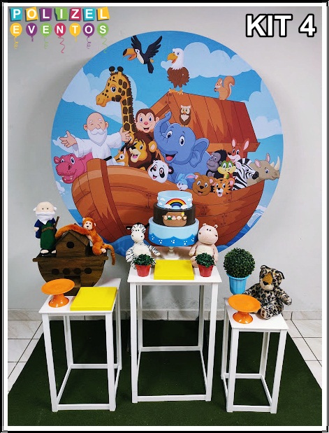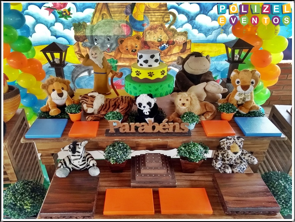 Todas as decorações contém fundo (tecido ou telado com balões), móveis (clássicos ou rústicos), bolo cenográfico e mesa de brinquedos