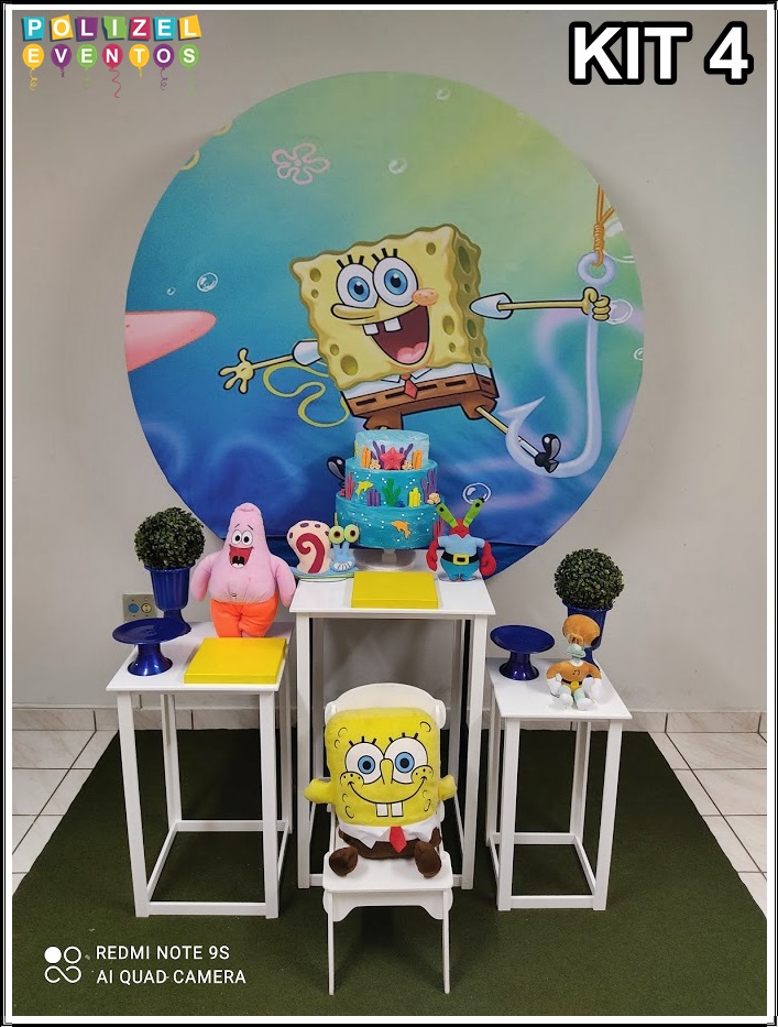 Todas as decorações contém fundo (tecido ou telado com balões), móveis (clássicos ou rústicos), bolo cenográfico e mesa de brinquedos