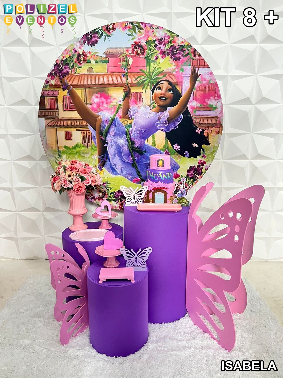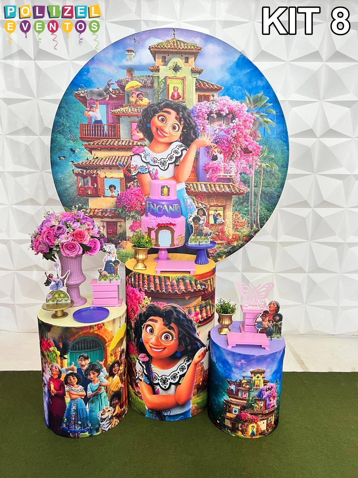 Todas as decorações contém fundo (tecido ou telado com balões), móveis (clássicos ou rústicos), bolo cenográfico e mesa de brinquedos