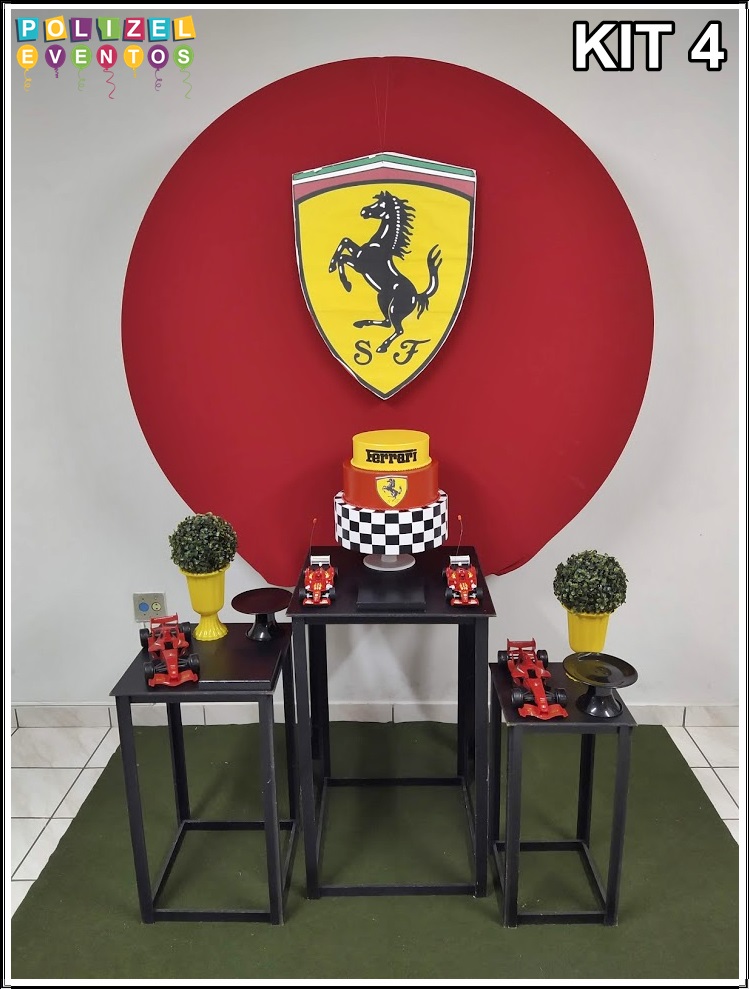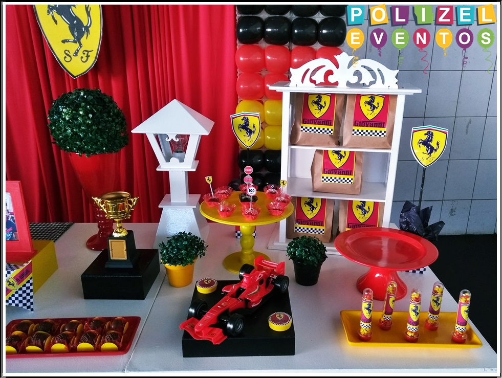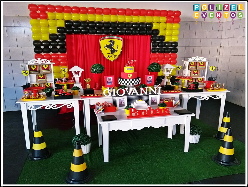 Todas as decorações contém fundo (tecido ou telado com balões), móveis (clássicos ou rústicos), bolo cenográfico e mesa de brinquedos
