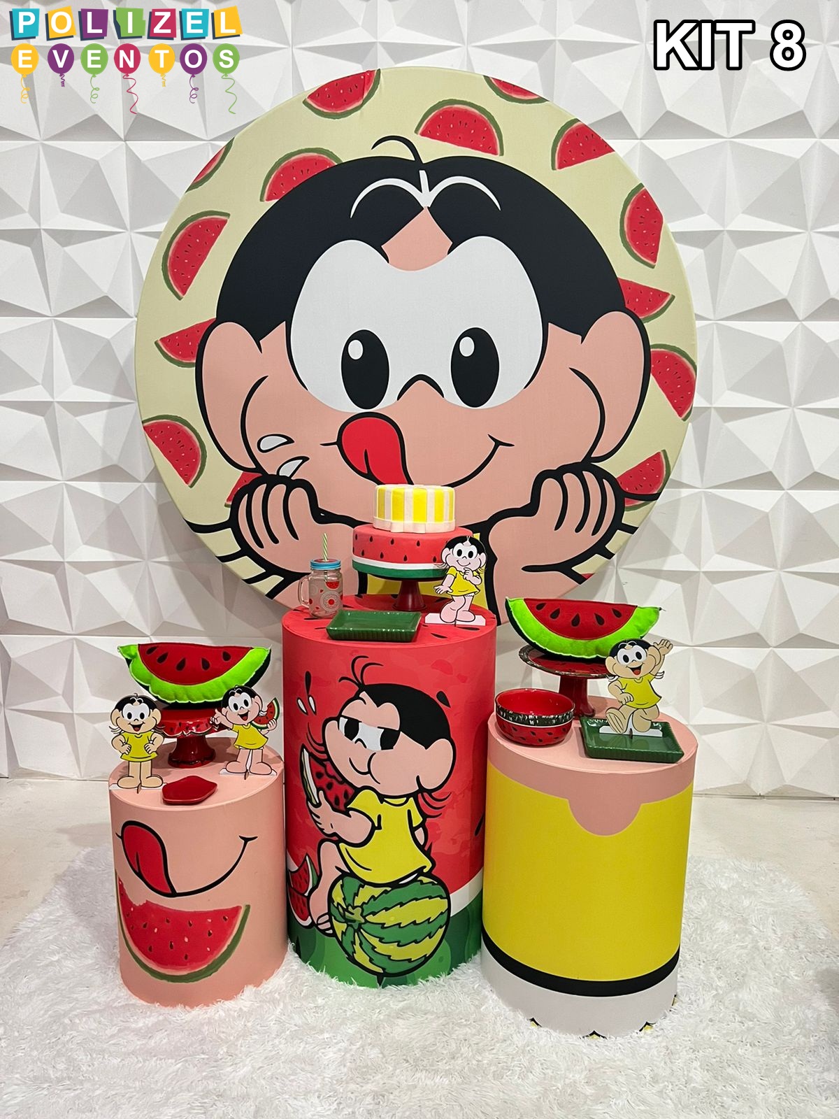 Todas as decorações contém fundo (tecido ou telado com balões), móveis (clássicos ou rústicos), bolo cenográfico e mesa de brinquedos