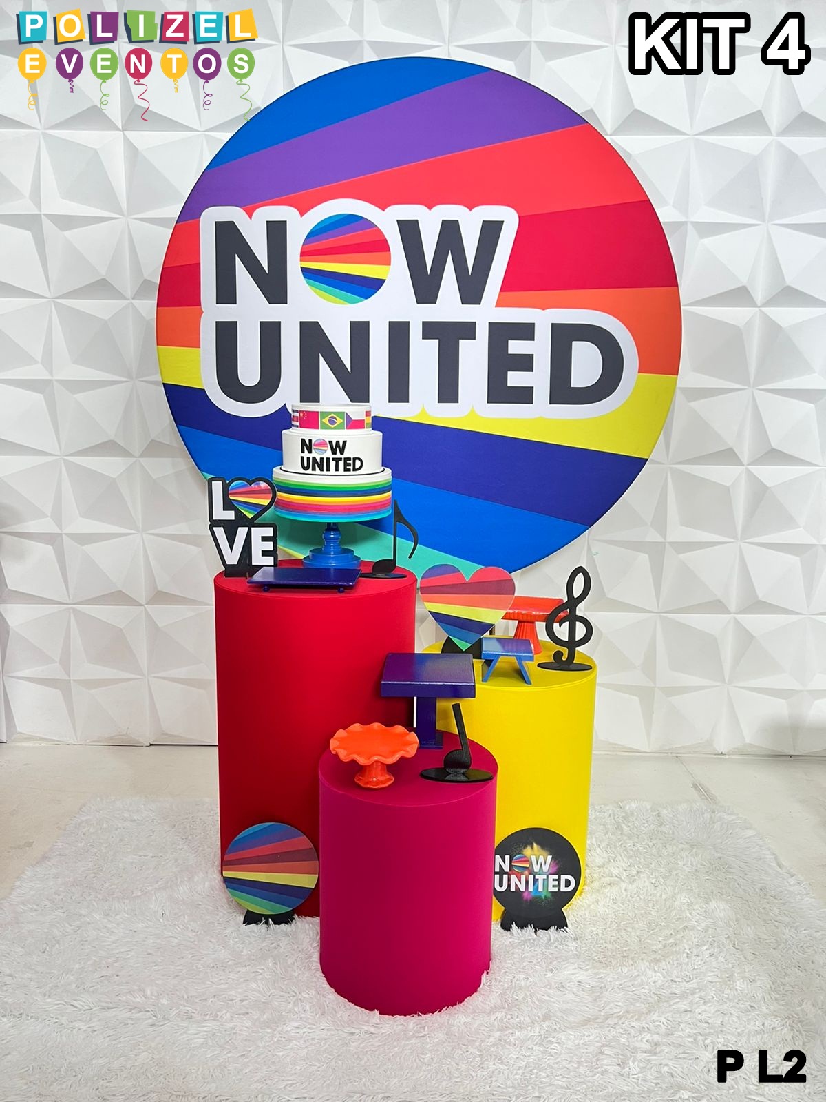 Todas as decorações contém fundo (tecido ou telado com balões), móveis (clássicos ou rústicos), bolo cenográfico e mesa de brinquedos