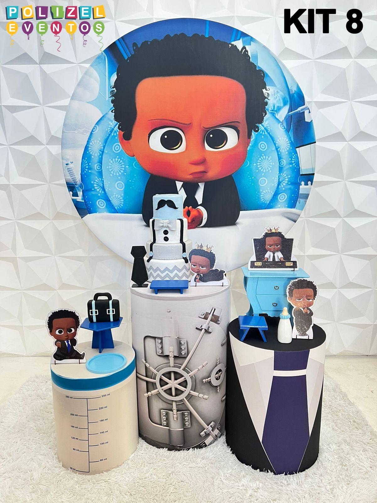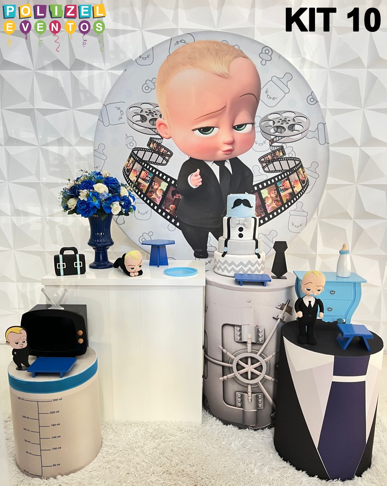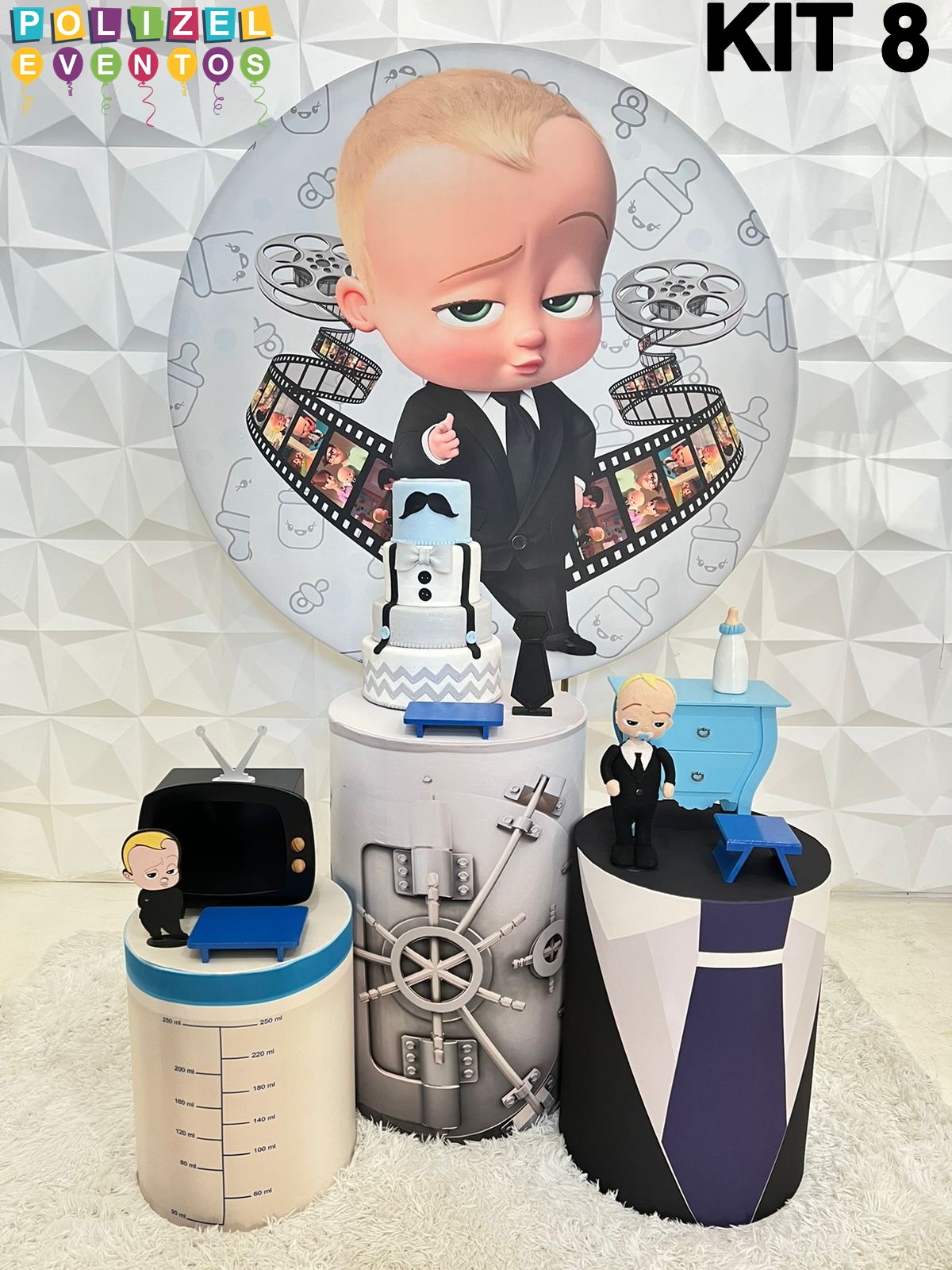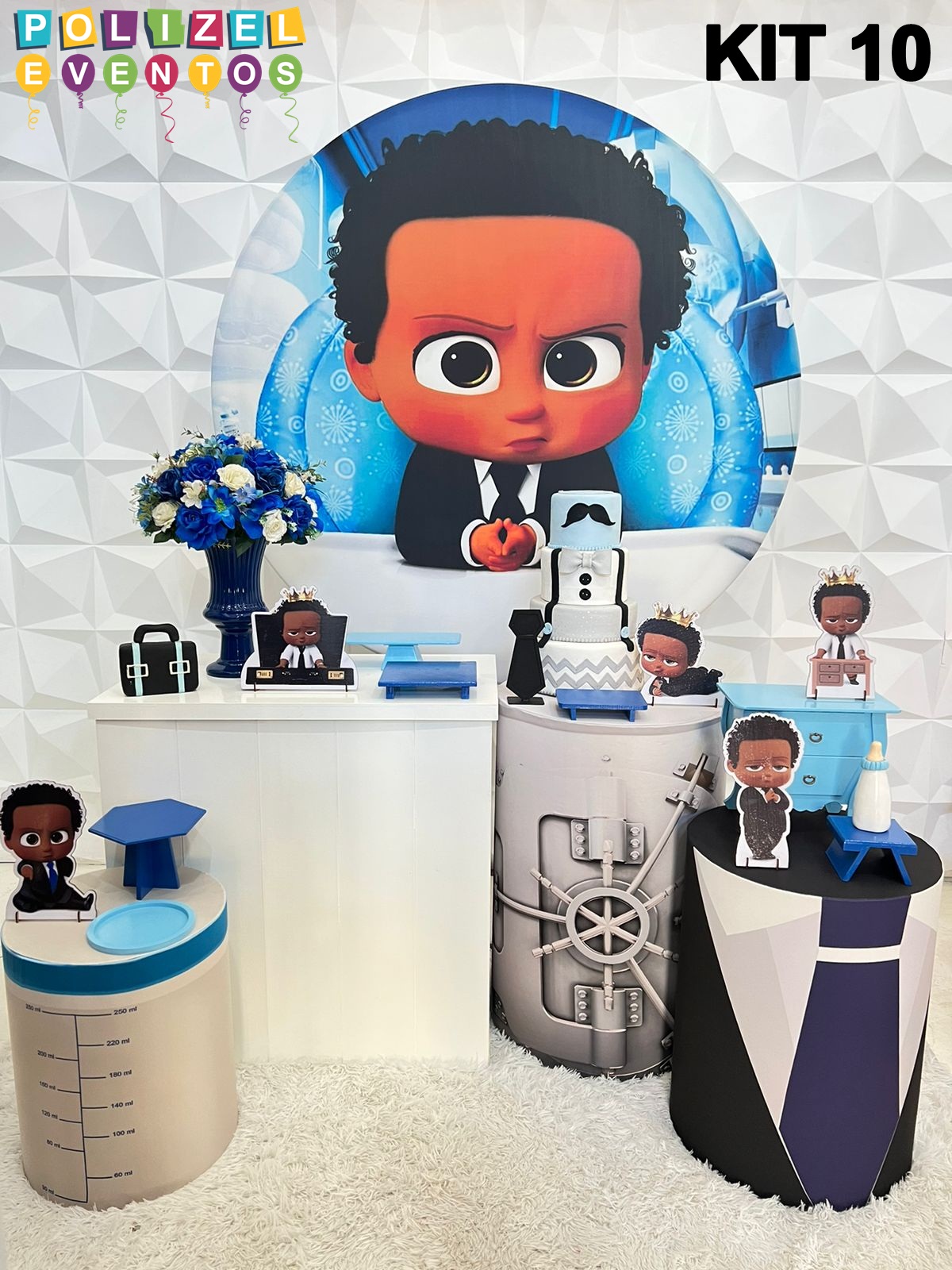 Todas as decorações contém fundo (tecido ou telado com balões), móveis (clássicos ou rústicos), bolo cenográfico e mesa de brinquedos