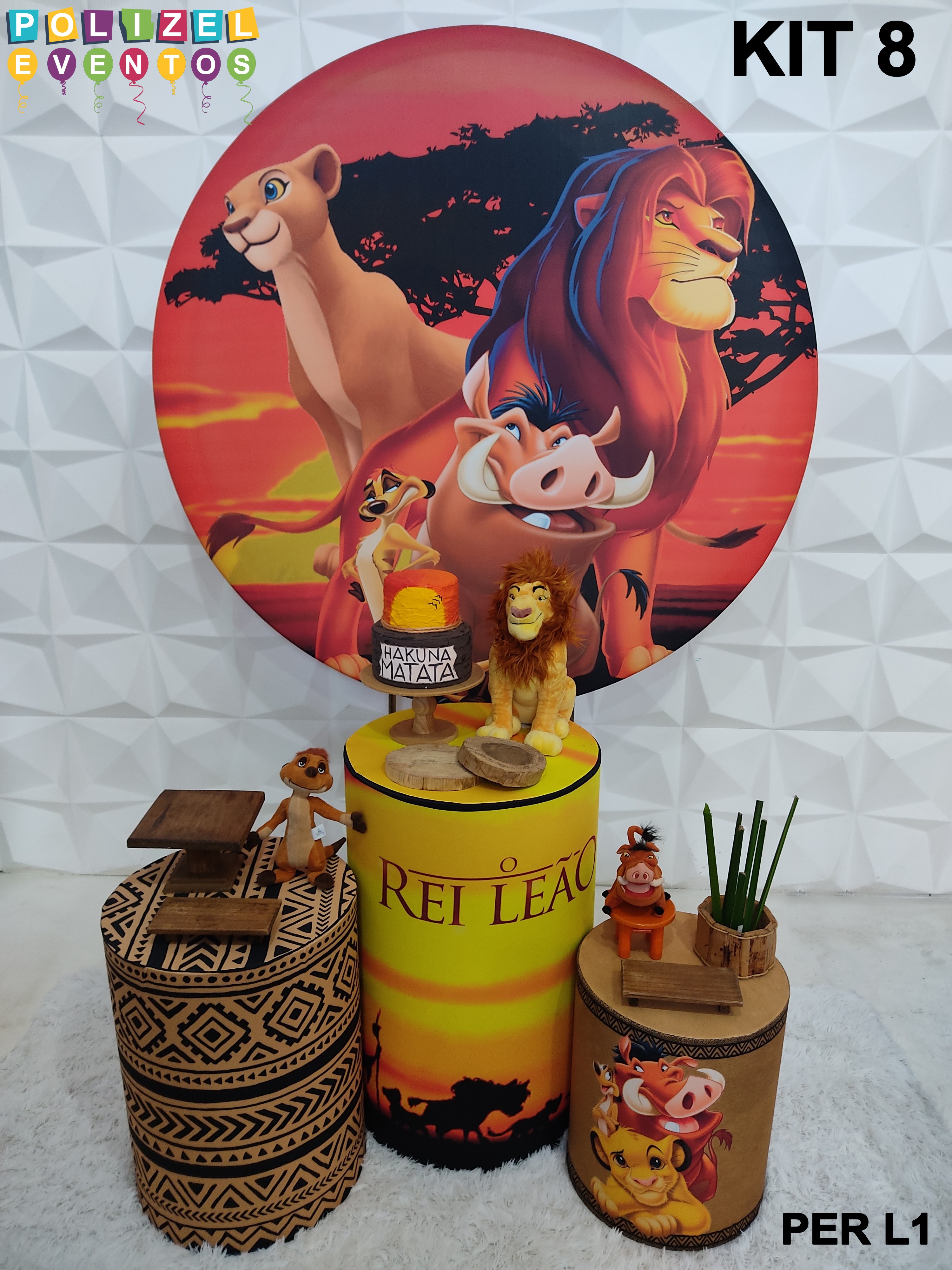 Todas as decorações contém fundo (tecido ou telado com balões), móveis (clássicos ou rústicos), bolo cenográfico e mesa de brinquedos